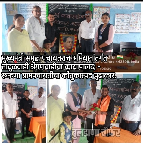 महाराष्ट्र शासनाच्या मुख्यमंत्री समृद्ध पंचायतराज अभियानांतर्गत बुलढाणा जिल्ह्यातील रूम्हणा ग्रामपंचायतीने विकासकामांचा धडाका लावला आहे. या अभियानांतर्गत तांदुळवाडी येथील अंगणवाडी केंद्रात मूलभूत सुविधांचे बळकटीकरण करून हे केंद्र अधिक सक्षम करण्यात आले आहे. ग्रामपंचायतीच्या या यशस्वी वाटचालीची दखल आता थेट मंत्रालयाने घेतली असून, शासनाच्या अधिकृत संकेतस्थळावर या कार्याचा गौरव करण्यात आला आहे.