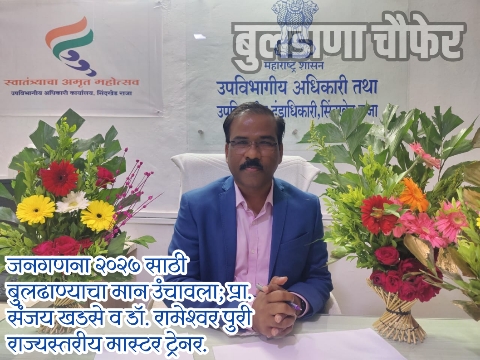 आगामी जनगणना २०२७च्या पार्श्वभूमीवर बुलढाणा जिल्ह्यासाठी अभिमानाची बाब घडली असून सिंदखेड राजा येथील उपविभागीय अधिकारी प्रा. संजय खडसे आणि खामगाव येथील उपविभागीय अधिकारी डॉ. रामेश्वर पुरी यांची महाराष्ट्र राज्यस्तरावर मास्टर ट्रेनर म्हणून निवड करण्यात आली आहे.
