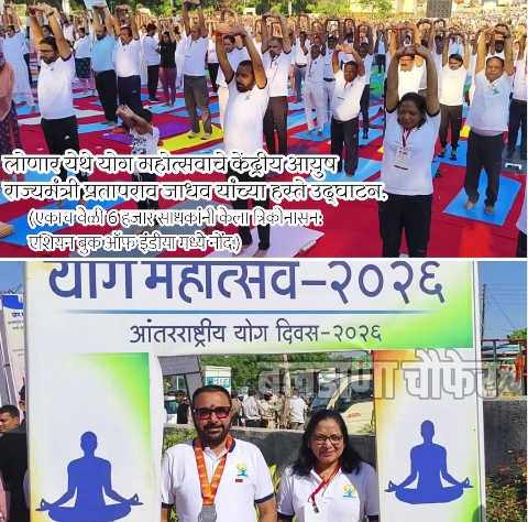 आंतरराष्ट्रीय योग दिनाला 75 दिवस शिल्लक असताना योगाचा प्रचार प्रसार व्हावा, या दृष्टिकोनातून केंद्रीय आयुष्य बुलढाणा जिल्ह्यातील जगप्रसिद्ध लोणार सरोवराच्या काठावर करण्यात आले होते. या योग महोत्सवाचे उद्घाटन केंद्रीय आयुष्यमंत्री प्रतापराव जाधव यांच्या हस्ते आज सकाळी झाले. त्यावेळी मार्गदर्शन करताना ते बोलत होते. यावेळी आयुष विभागाच्या सहसचिव मोनालिसा दास, जिल्हाधिकारी डॉ. प्रवीणकुमार देवरे, जिल्हा पोलीस अधीक्षक निलेश तांबे यांच्यासह माजी आमदार संजय रायमुलकर, राजश्री प्रतापराव जाधव, आयुक्त रमेश चौहाण, मोरारजी देसाई संस्थाचे डॉ. काशिनाथ, नगराध्यक्ष, लोणार मीराताई भूषण मापारी, प्रकाश जी मापारी, बळीरामजी मापारी, आंतरराष्ट्रीय नॅचरोपॅथी संघटनाचे अनंत बिरादार, उपस्थित होते.प्रतापराव जाधाव म्हणाले की, आज जगासमोर असलेल्या गैर-संचारी रोगांच्या वाढत्या आव्हानाला तोंड देण्यासाठी योग अत्यंत प्रभावी उपाय ठरू शकतो. नियमित योगाभ्यास, प्राणायाम आणि ध्यान यामुळे मधुमेह, उच्च रक्तदाब, लठ्ठपणा आणि तणाव यांसारख्या अनेक समस्यांवर नियंत्रण मिळवता येते, असेही त्यांनी यावेळी सांगितले. Asia Book of Records’ आणि ‘India Book of Records 2026’ मध्ये अधिकृतपणे नोंद .पंतप्रधान श्री नरेन्द्र मोदी यांच्या मार्गदर्शनाखाली आज लोणारच्या ऐतिहासिक भूमीवर एक नवा कीर्तिमान प्रस्थापित झाला आहे. ‘आंतरराष्ट्रीय योग दिवस 2026’ (#IDY2026) च्या 100 दिवसीय काउंटडाउनच्या 75 व्या दिवशी आयोजित ‘योग महोत्सवात’ 6 हजार योगसाधकांनी एकाच वेळी ‘त्रिकोणासन’ (Trikonasana) चा अभ्यास केला. या गौरवशाली कामगिरीची ‘Asia Book of Records’ आणि ‘India Book of Records 2026’ मध्ये अधिकृतपणे नोंद करण्यात आली आहे.