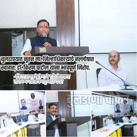 बुलढाणा जिल्हा नियोजन समितीच्या सभागृहात 6 एप्रिल रोजी मावळते मा.जिल्हाधिकारी डॉ. किरण पाटील यांना भावपूर्ण निरोप देण्यात आला, तर नूतन मा. जिल्हाधिकारी डॉ. प्रविणकुमार देवरे यांचे प्रशासनाच्या वतीने जल्लोषात स्वागत करण्यात आले. मावळत्या जिल्हाधिकाऱ्यांनी सुरू केलेली विकासकामे अधिक वेगाने पुढे नेण्याचा संकल्प डॉ. देवरे यांनी व्यक्त केला.दिमाखदार सोहळ्यात जिल्हा परिषदेचे मुख्य कार्यकारी अधिकारी गुलाबराव खरात, अप्पर जिल्हाधिकारी सुधीर खांदे, उपजिल्हाधिकारी सदाशिव शेलार, निवासी उपजिल्हाधिकारी सुरेश कव्हळे, डॉ. पाटील यांच्या पत्नी शीला पाटील, तसेच सर्व उपजिल्हाधिकारी, उपविभागीय अधिकारी, तहसीलदार, विविध विभागांचे विभाग प्रमुख व कर्मचारी मोठ्या संख्येने उपस्थित होते.नूतन जिल्हाधिकारी डॉ. देवरे यांनी यावेळी म्हणाले, बुलढाणा जिल्ह्यातील पूर्वीचा कामाचा अनुभव गाठीशी असल्याने मला येथील परिस्थितीची जाण आहे. आगामी काळात निर्यात, कृषी, शिक्षण आणि आरोग्य या क्षेत्रांवर विशेष भर देऊन जिल्ह्याचा सर्वांगीण विकास साधण्याचा मानस आहे. डॉ. पाटील यांनी घडवलेली अधिकाऱ्यांची टीम जबरदस्त असून, त्यांच्या सहकार्याने विकासाचा ध्यास पूर्ण करू, असा विश्वासही त्यांनी व्यक्त केला.मावळते जिल्हाधिकारी डॉ. किरण पाटील यांनी आपल्या निरोपपर भाषणात जिल्ह्यातील अधिकाऱ्यांच्या एकजुटीचे आणि कार्यपद्धतीचे कौतुक केले. ते म्हणाले आज महाराष्ट्रात बुलढाणा जिल्हा विकासकामांमध्ये अग्रेसर आहे, असे त्यांनी अभिमानाने सांगितले. अधिकाऱ्यांना मार्गदर्शन करताना त्यांनी कामाचे नियोजन, पूर्वतयारी, पारदर्शकता आणि नियमित वृत्तपत्र वाचनाचे महत्त्व अधोरेखित केले. पशुसंवर्धन आयुक्तपदी पदोन्नतीबद्दल बोलताना, मुक्या प्राण्यांची सेवा ही पुण्याची बाब असल्याची भावना त्यांनी व्यक्त केली.
