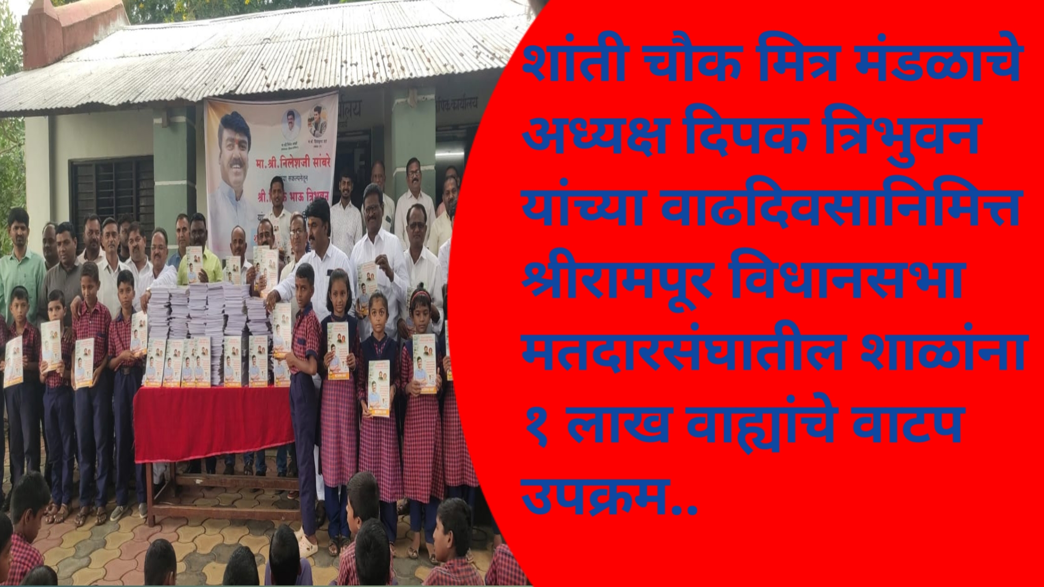 शांती चौक मित्र मंडळाचे अध्यक्ष दीपक त्रिभुवन यांच्या वाढदिवसानिमित्त श्रीरामपूर विधानसभा मतदारसंघातील शाळांना १ लाख वह्यांचे वाटप उपक्रम…