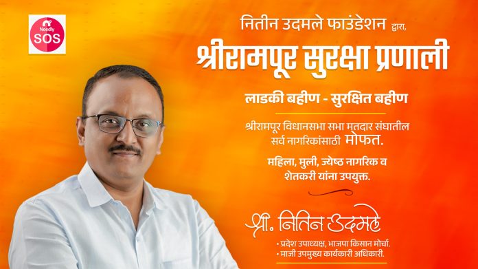 नितीन उदमले फाउंडेशन च्या माध्यमातून आपत्कालीन परिस्थिती मध्ये निकटवर्तीय लोकांना मेसेज व लोकेशन पाठवणारी *श्रीरामपूर सुरक्षा प्रणाली* चे आज दि. 3/10/2024 रोजी घट स्थापने च्या निम्मिताने लोकार्पण करत आहोत.