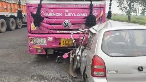 याबाबत सविस्तर वृत्त असे की,शिर्डी कडून नगर कडे जात असलेल्या अल्टो कार MH.14 AV.3372 ला नगर कडून शिर्डी कडे जात असणाऱ्या माल वाहतूक ट्रक KA.01.AN.5697 ने समोरून जोराची धडक दिली असता अल्टो कार मधील दीपक गोविंद म्हसे व माया दीपक म्हसे दोघेही राहणार ममदापूर,बाभळेश्वर हे दोघेही पती पत्नी जागीच ठार झाले आहेत.
