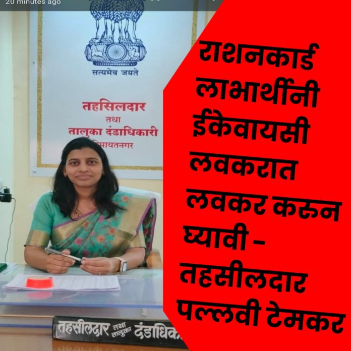 Home Breaking News राशनकार्ड लाभार्थ्यांनी ईकेवायसी लवकरात लवकर करून घ्यावी – तहसीलदार पल्लवी टेमकर